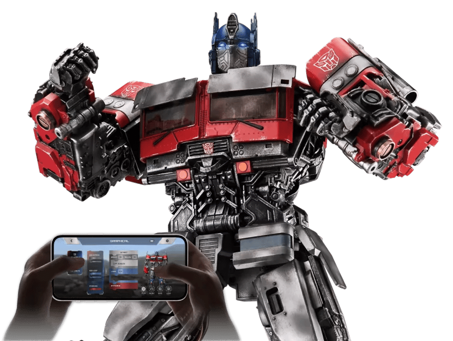 Optimus Prime comes with a variety of accessories (see below), and is set-up for customizable movements using block-based or manual programming, allowing him to perform martial arts moves, dance and other cool poses on command. Plus, with the included stand, the robot can perform aerial maneuvers unrestricted by space limitations.